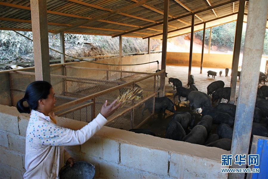 12月3日,在云南省瀾滄拉祜族自治縣南嶺鄉(xiāng)黃回村,查山種養(yǎng)農(nóng)民專業(yè)合作社村民在投喂豬飼料。 新華社記者杜涓涓攝