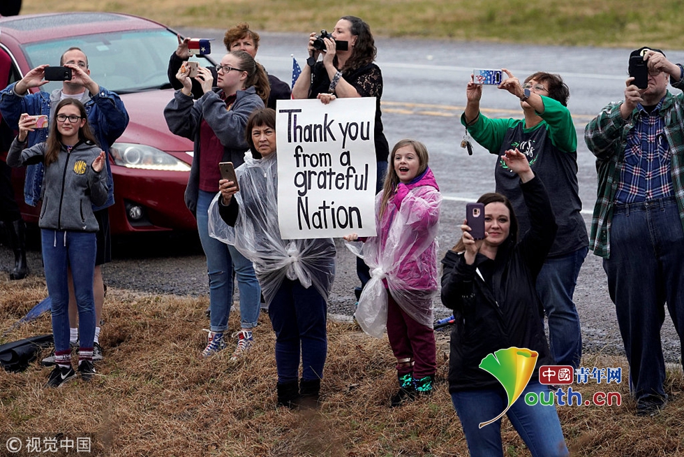 當(dāng)?shù)貢r(shí)間2018年12月6日,美國(guó)德州,美國(guó)前總統(tǒng)老布什將落葬德州農(nóng)機(jī)大學(xué)布什總統(tǒng)圖書(shū)館和博物館后面的布什家族墓地,與他半年前去世的妻子芭芭拉以及早夭的女兒蘿賓葬在一起。當(dāng)天,一輛葬禮專(zhuān)列將載著老布什的棺槨及其親朋,從休斯敦郊區(qū)開(kāi)往老布什的最后安葬之地、德州農(nóng)機(jī)大學(xué)。這列火車(chē)的第六節(jié)車(chē)廂側(cè)面是透明的,人們可以在鐵軌旁看到老布什蓋著國(guó)旗的靈樞。圖片作者:Joe Raedle/視覺(jué)中國(guó)