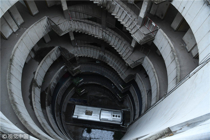 重慶洋人街景區(qū)內(nèi)的穿樓觀光索道吸引不少游客體驗。據(jù)悉,跨度長1000米的觀光索道將隨著洋人街的拆遷而搬離。中新社記者陳超 攝 2017年9月27日,重慶,南岸區(qū)某小區(qū)的“螺旋”停車場,從公路到車庫要下5層樓,司機(jī)需要轉(zhuǎn)無數(shù)個360度圈。圖片來源:視覺中國
