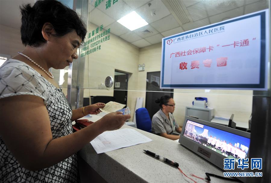 在廣西壯族自治區(qū)人民醫(yī)院,從北海到南寧異地就醫(yī)的鄭曉榮持社會保障卡在結(jié)算醫(yī)藥費(2015年6月30日攝)。 歷史進步的背后,必有堅強領(lǐng)導力量的引領(lǐng)。 “堅持黨的領(lǐng)導,全面從嚴治黨,是改革開放取得成功的關(guān)鍵和根本?!绷暯娇倳浛偨Y(jié)改革開放40年歷史和實踐作出這一重要論斷。 歷史關(guān)頭,中國共產(chǎn)黨的關(guān)鍵抉擇,改變了當代中國的命運; 宏偉征程,中國共產(chǎn)黨帶領(lǐng)億萬人民在改革開放實踐中,實現(xiàn)歷史性跨越; 面向未來,中國共產(chǎn)黨肩負實現(xiàn)中華民族偉大復興的歷史使命,把改革開放繼續(xù)推向前進。 新華社記者李斌攝
