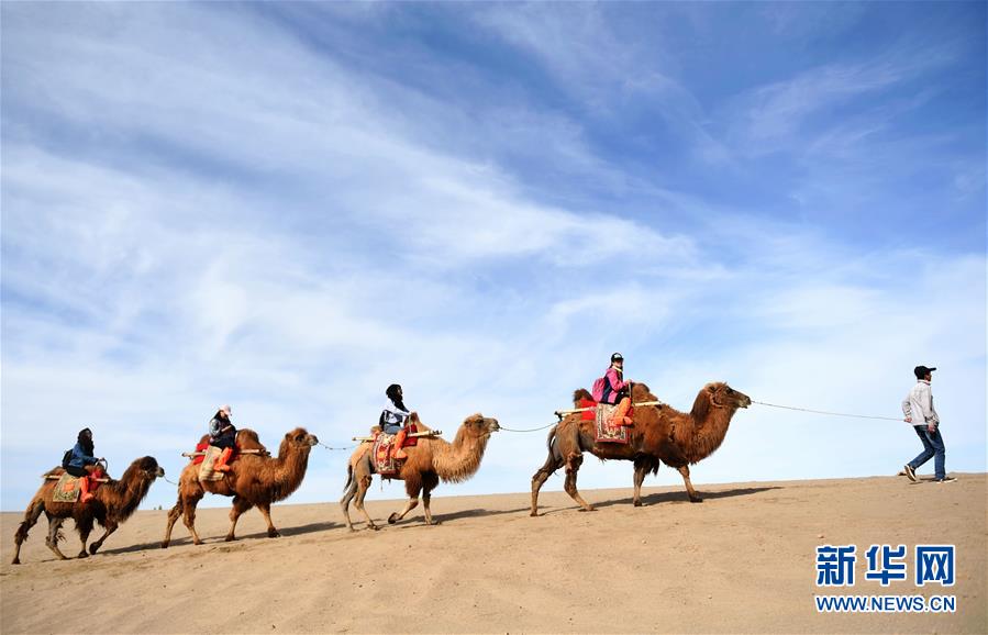 游客在敦煌鳴沙山騎駱駝(2017年5月3日攝)。 敦煌記錄歷史。開放的胸襟,曾讓這里成為古代絲綢之路上“華戎所交一都會(huì)”。 時(shí)隔千年,改革開放的春風(fēng)吹入西北內(nèi)陸小城,敦煌再度成為中國(guó)對(duì)外開放的文化前沿。 新華社記者 陳斌 攝