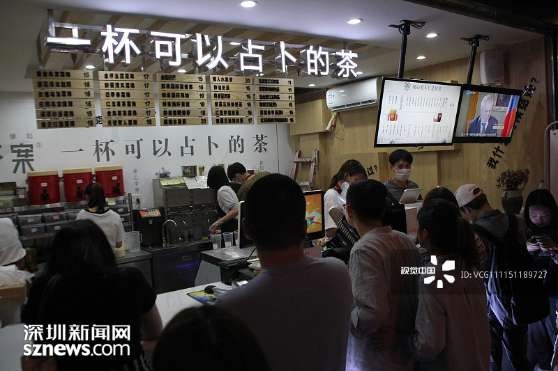 2018年4月21日,重慶,萬(wàn)達(dá)廣場(chǎng)附近有一家新開業(yè)的網(wǎng)紅答案茶的冷飲店,這家答案茶冷飲店人氣異常火爆,門前已排起了兩條“長(zhǎng)龍”。 |