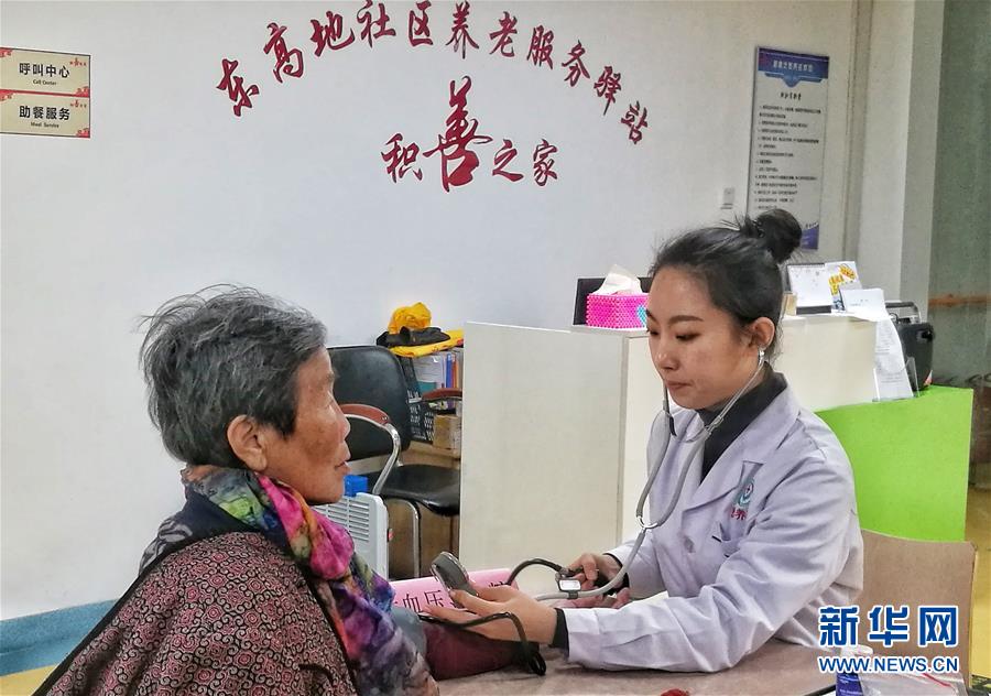12月18日,豐臺區(qū)東高地街道養(yǎng)老服務(wù)驛站聘請的醫(yī)務(wù)人員為社區(qū)老人進(jìn)行免費(fèi)檢查。  新華社記者 李欣 攝