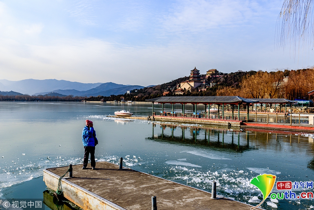 頤和園昆明湖已經(jīng)大面積結(jié)冰。