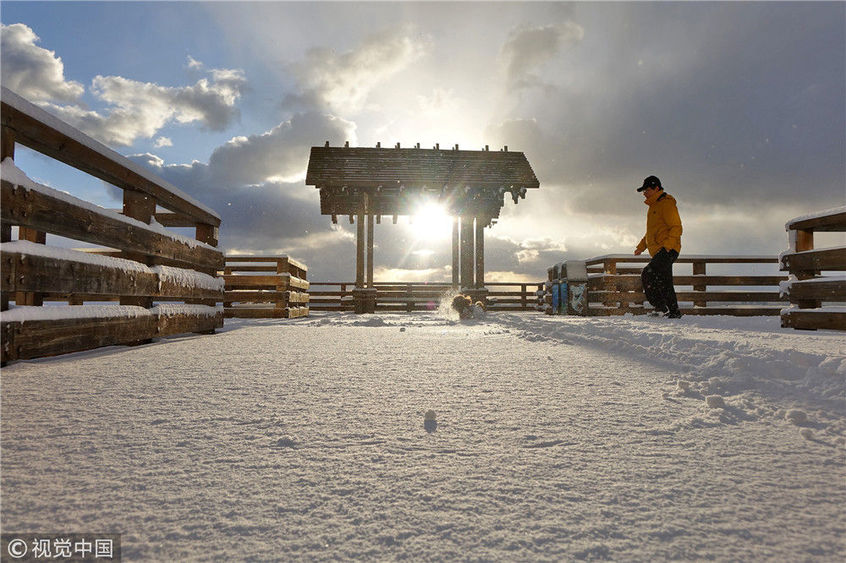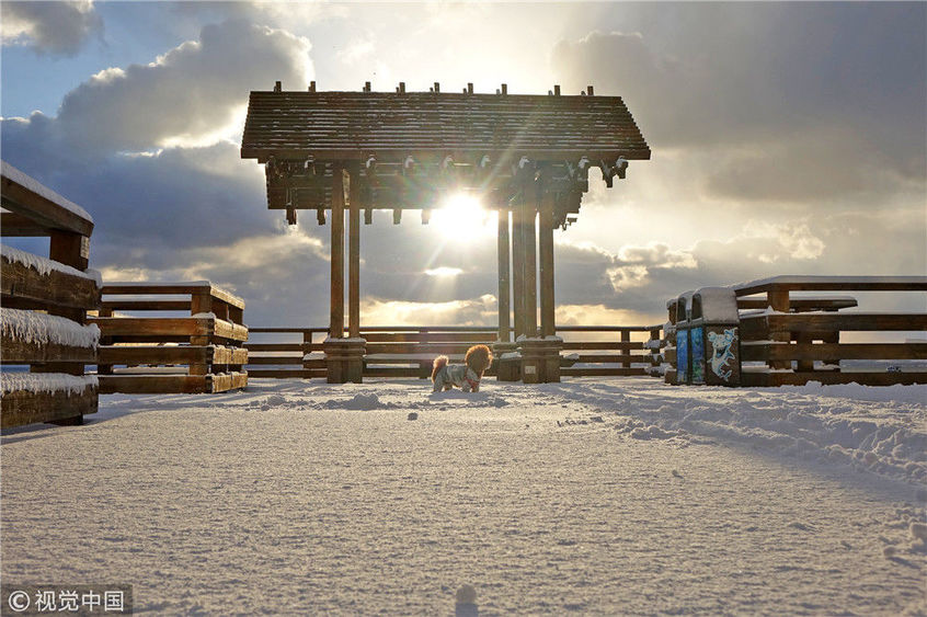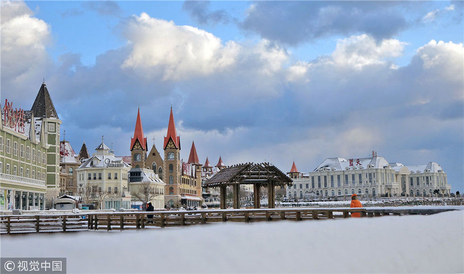 2018年12月7日,山東煙臺(tái),雪后的海濱景色。當(dāng)日煙臺(tái)迎來(lái)今冬首場(chǎng)降雪,海濱建筑在大雪的裝點(diǎn)下,形成海濱城市獨(dú)有的美麗雪景。地處膠東半島的煙臺(tái),冬季降雪量遠(yuǎn)高于地理位置相近的其他地區(qū),形成了獨(dú)特的海濱雪城,是中國(guó)著名的“雪窩”。唐克/視覺(jué)中國(guó)
