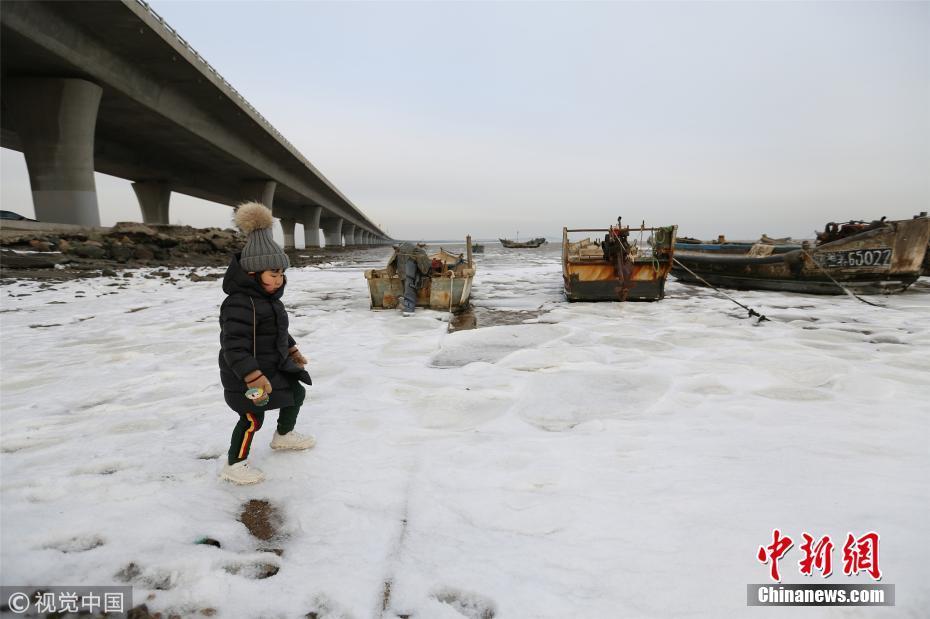 12月9日,受大風(fēng)降溫天氣影響,青島膠州灣北部冰情初現(xiàn),青島西海岸新區(qū)膠州灣跨海大橋入口處海冰層層疊疊,暫未對(duì)海上漁業(yè)生產(chǎn)帶來(lái)影響。張進(jìn)剛 攝 圖片來(lái)源:視覺(jué)中國(guó)