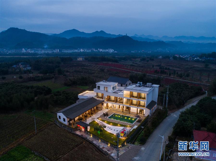夜色中的民宿“初憶小院”(12月19日攝)。該民宿是河橋鎮(zhèn)“90后”女孩章淑貞開辦的,民宿融入了大量的現(xiàn)代建筑設(shè)計風(fēng)格,深受年輕人的喜愛。 新華社記者 徐昱 攝