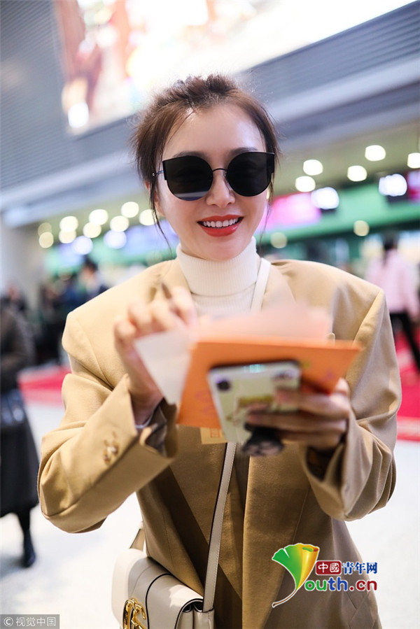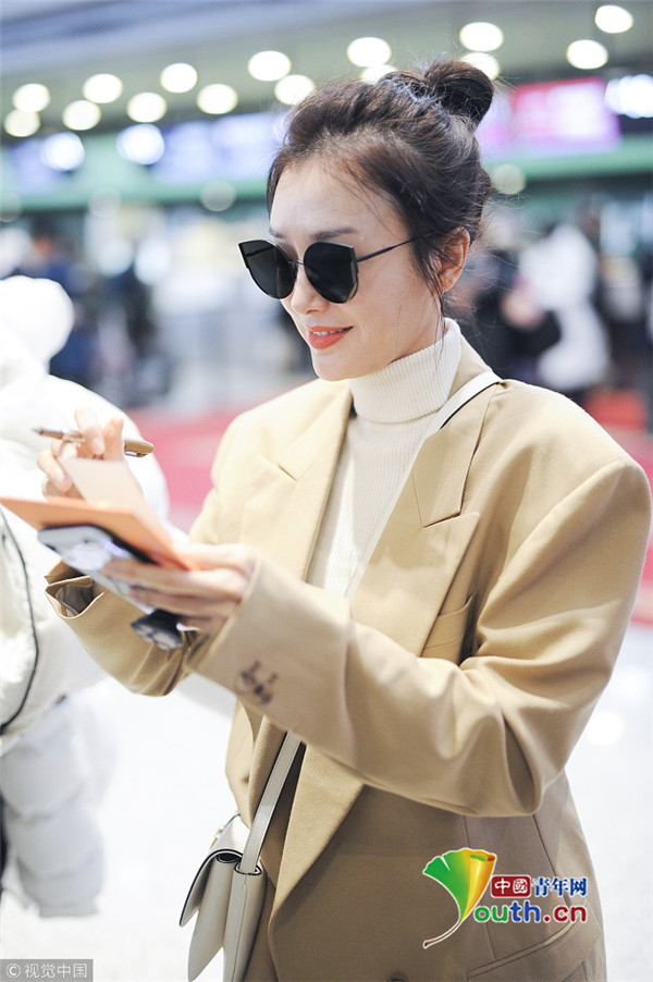 2018年12月11日,上海,秦嵐現(xiàn)身機(jī)場(chǎng)。她穿淺西裝配高領(lǐng)毛衣溫暖又時(shí)尚,梳丸子頭清新減齡,機(jī)場(chǎng)獲粉絲送告白信,嬌羞嘟嘴賣(mài)萌少女范十足。