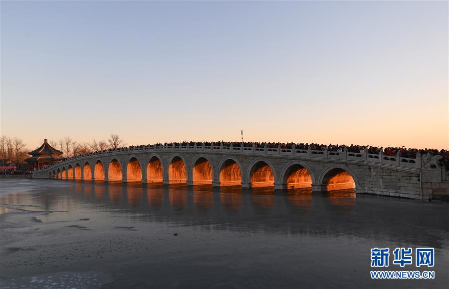 頤和園十七孔橋現(xiàn)“金光穿洞”美景