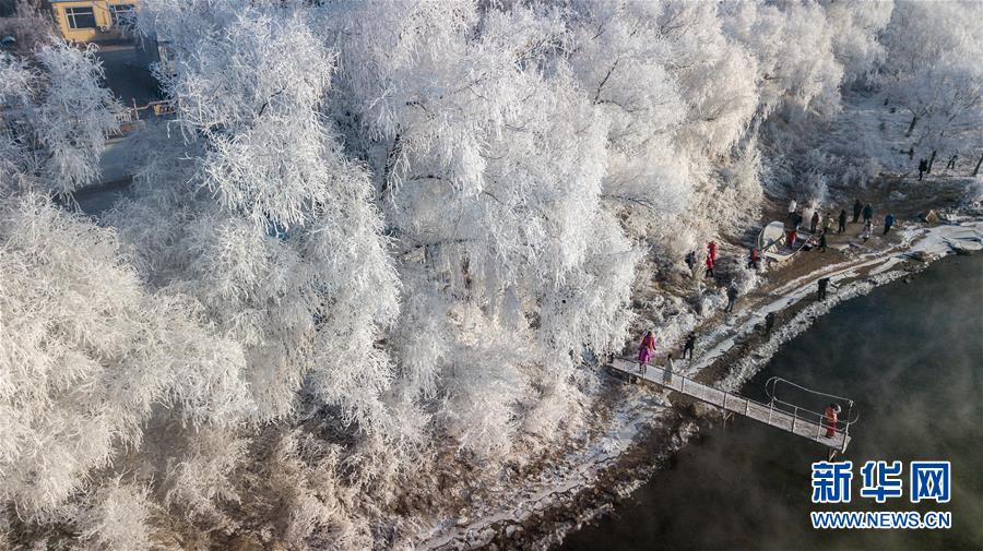 這是在吉林省吉林市豐滿區(qū)吉豐東路松花江畔拍攝的霧凇美景(12月12日無人機(jī)拍攝)。 新華社記者張楠攝