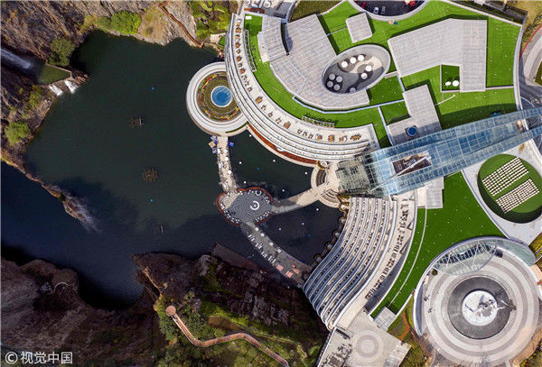 另外,大堂內(nèi)有一根動態(tài)水幕,自下而上直通屋頂,水幕是根據(jù)深坑的景色變化、巖層變化而安排的設計故事體驗。