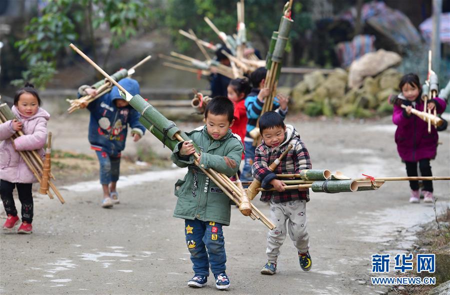 孩子們?cè)诎徇\(yùn)剛剛購買的蘆笙(12月24日攝)。