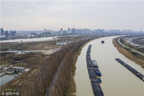 2018年12月27日,江蘇淮安,航拍京杭大運河淮安段冬日景色。