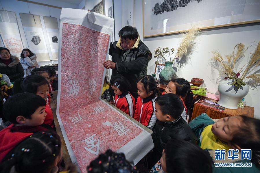 12月29日,孩子們?cè)谯祬擎?zhèn)的老街上觀看拓印技藝展示。 當(dāng)日,“中國(guó)竹扇之鄉(xiāng)”——浙江省安吉縣鄣吳鎮(zhèn)舉辦傳統(tǒng)文化迎新年活動(dòng)。舉辦包括扇文化博覽會(huì)、扇面藝術(shù)展、制扇工藝展示及金石、拓印文化展示等活動(dòng),弘揚(yáng)中華優(yōu)秀傳統(tǒng)文化。 自上世紀(jì)七十年代以來,鄣吳鎮(zhèn)開始發(fā)展制扇產(chǎn)業(yè),現(xiàn)在該鎮(zhèn)有各類制扇企業(yè)80余家,制扇行業(yè)從業(yè)人員2000多人,年產(chǎn)值達(dá)2億多元。 新華社記者 徐昱攝