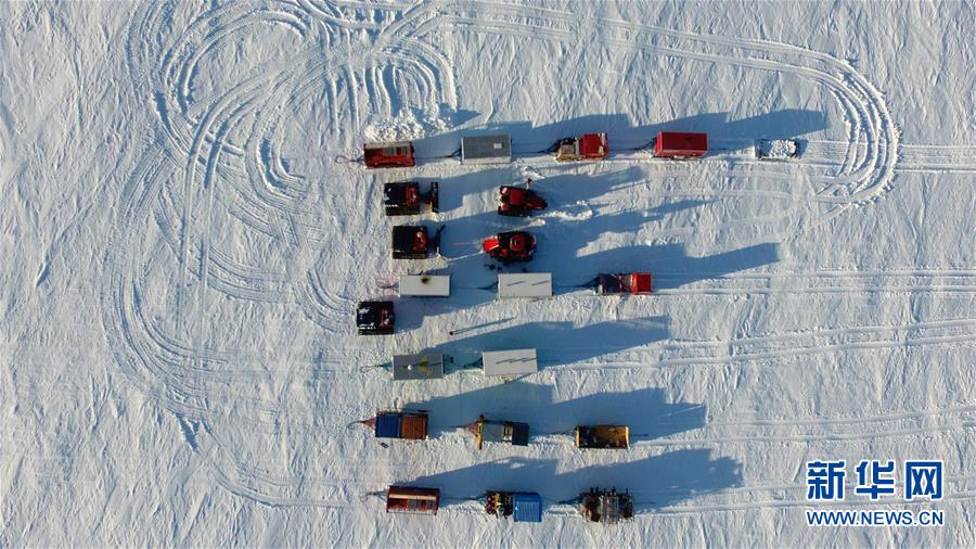 昆侖隊(duì)距離南極中山站990公里處的營(yíng)地(2019年1月1日無人機(jī)拍攝)。