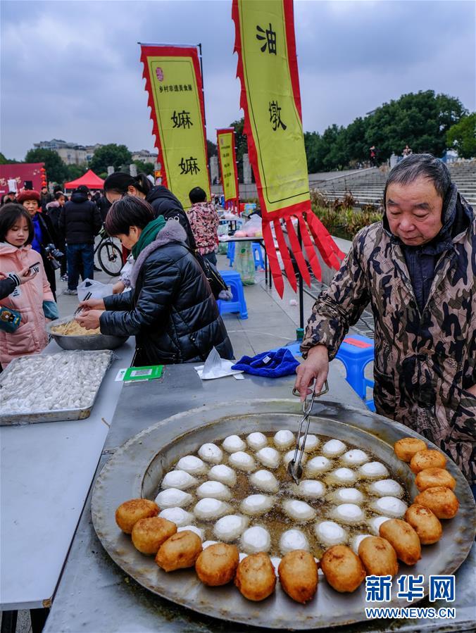 2019年1月1日,居民在展演活動上制作傳統(tǒng)美食“油墩”。2019年元旦,浙江省桐鄉(xiāng)市濮院鎮(zhèn)舉辦新年“非遺文化藝術(shù)節(jié)”活動,濮院鎮(zhèn)下屬多個鄉(xiāng)村的傳統(tǒng)美食制作、手工藝品、非遺文化表演等鄉(xiāng)村特色非遺項目在濮院鎮(zhèn)中心廣場進(jìn)行集中展示展演。新華社記者 徐昱 攝