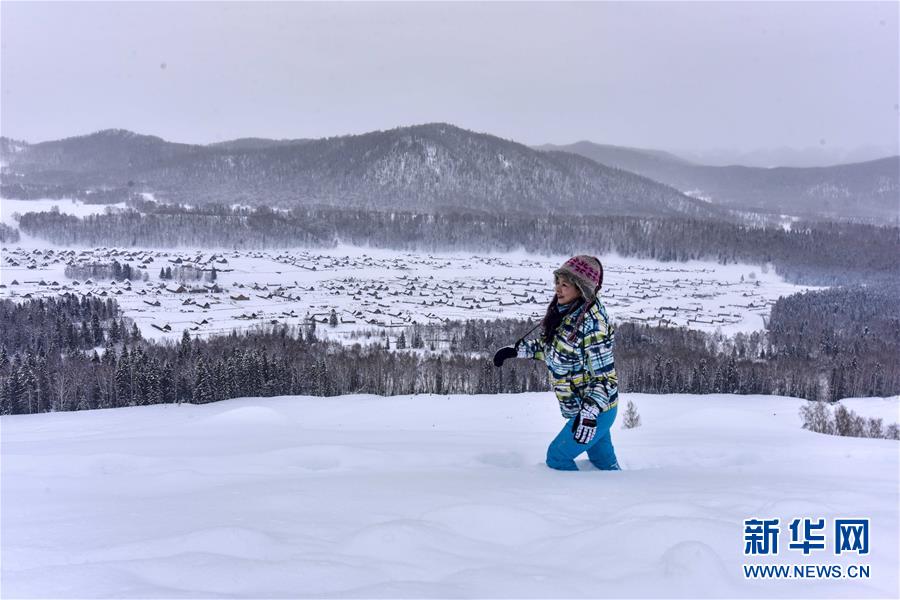 1月1日,在新疆禾木雪鄉(xiāng),當(dāng)?shù)鼐用癖硌菅┑刭愸R。