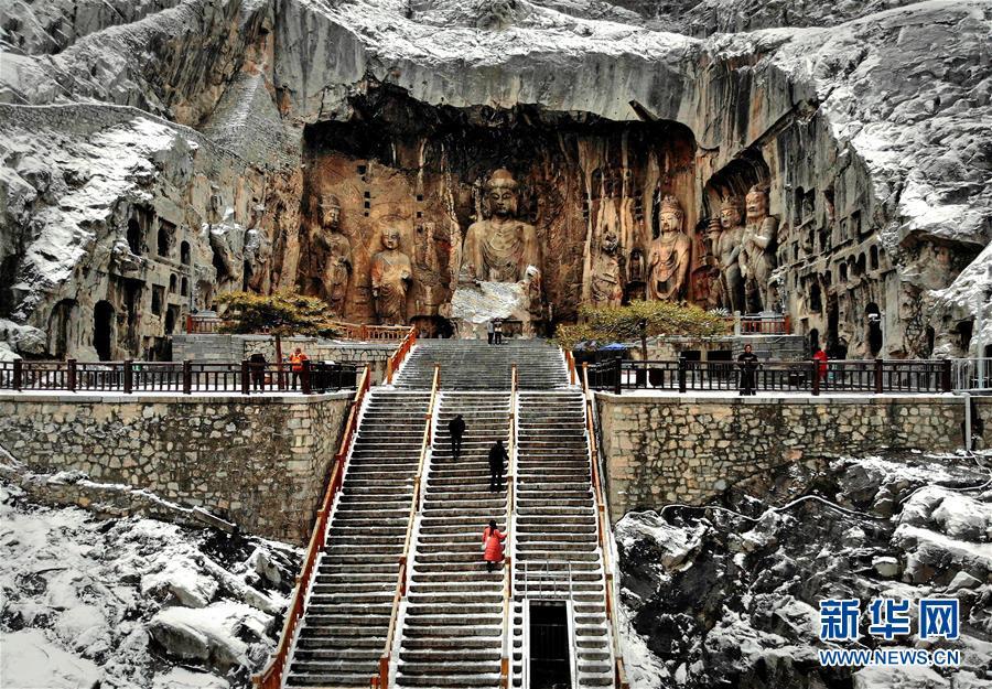 1月9日無人機(jī)拍攝的洛陽龍門石窟奉先寺。 新華社記者李安攝