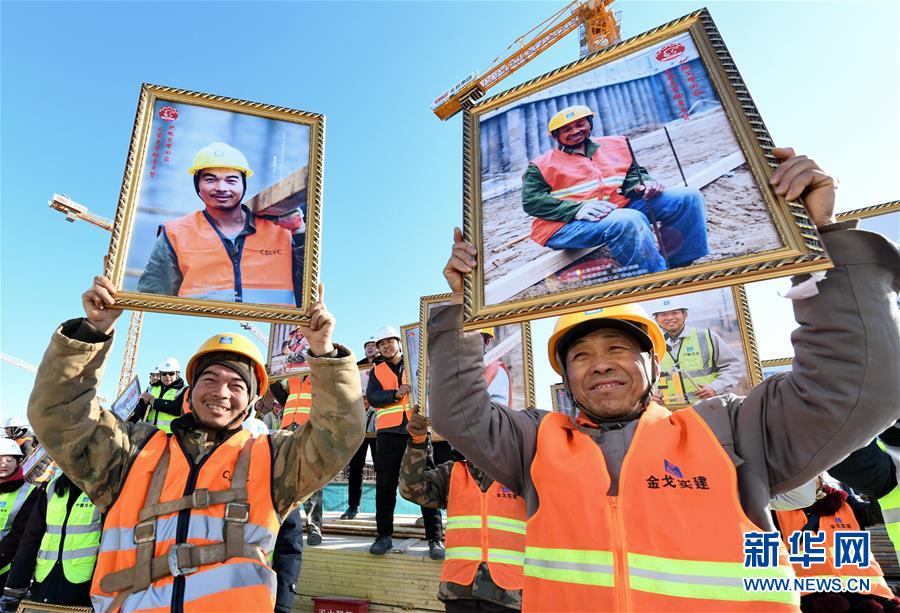 1月9日,中建一局北京城市副中心周轉(zhuǎn)房項目工地的建筑工人在展示自己的照片。 當日,由北京市總工會主辦的工會“兩節(jié)”送溫暖活動之一的“把微笑帶回家,為最美勞動者點贊”大型公益活動,在中建一局北京城市副中心職工周轉(zhuǎn)房項目工地舉行。眾多勞動者獲贈“微笑”肖像照和保溫壺、毛巾等新春“大福包”。 新華社記者 李欣 攝