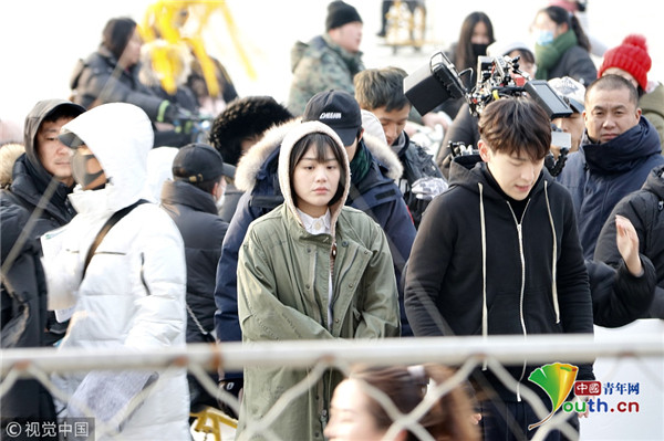 2019年1月9日,北京,鄧倫、馬思純現(xiàn)身后?;鶊?chǎng),騎冰車拍攝新劇《加油你是最棒的》。寒冷的北京,二人身著單薄的劇中服裝現(xiàn)身拍攝片場(chǎng),不顧嚴(yán)寒超敬業(yè)。