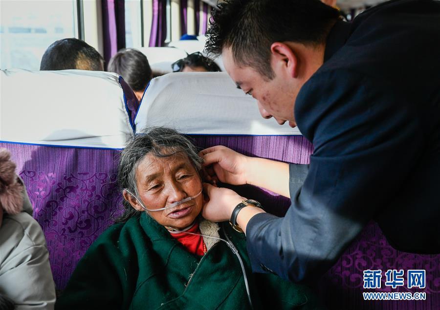 大學(xué)生剛措(右)和桑旦措姆(中)放寒假乘坐Z6802次列車回老家那曲(1月11日攝)。