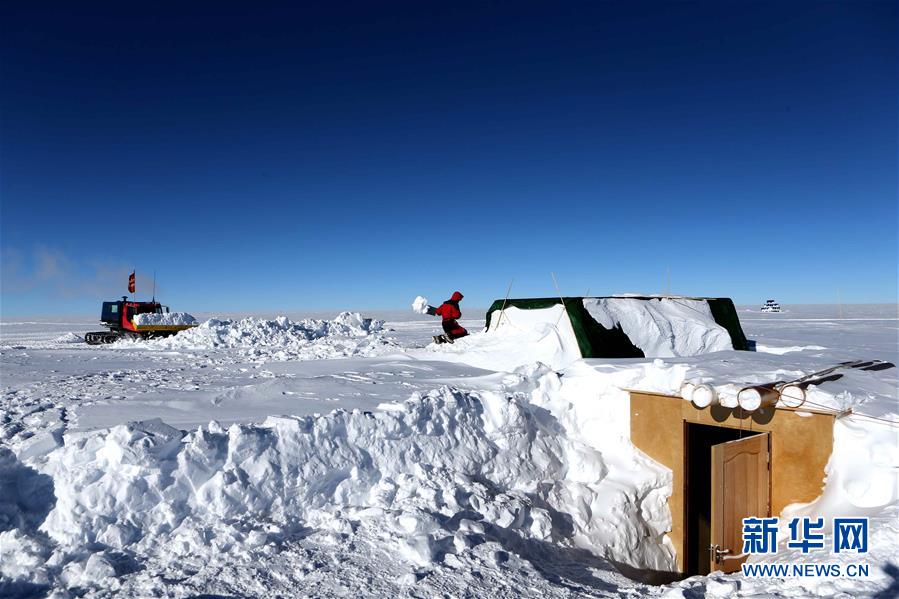 科考隊員清理深冰芯房周圍的積雪(1月6日攝)。 新華社記者 劉詩平 攝