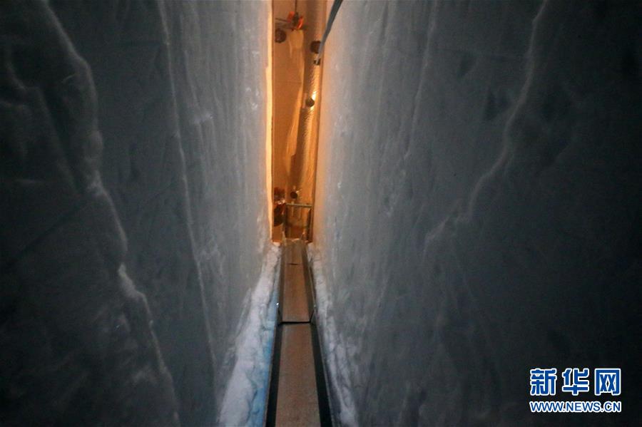 這是深冰芯房內(nèi)10米深的鉆探槽(1月12日攝)。  新華社記者 劉詩平 攝