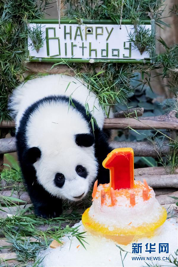 1月14日,在馬來西亞吉隆坡附近的馬來西亞國家動物園,大熊貓寶寶過一歲生日。