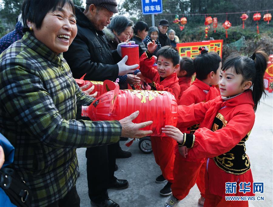 1月16日,孩子們把用廢舊物品制作的節(jié)日花燈送給村民。 臨近春節(jié),浙江省長(zhǎng)興縣開發(fā)區(qū)中心幼兒園的老師和孩子們來(lái)到長(zhǎng)興縣太湖街道下屬的新塘村,為村民表演文藝節(jié)目,用喜慶的傳統(tǒng)舞蹈營(yíng)造節(jié)日氣氛。另外孩子們還用紙盒、瓶子、彩色包裝紙等廢舊物品制作了環(huán)?;簦徒o村民,倡導(dǎo)低碳環(huán)保的節(jié)日新風(fēng)。 新華社記者 徐昱 攝