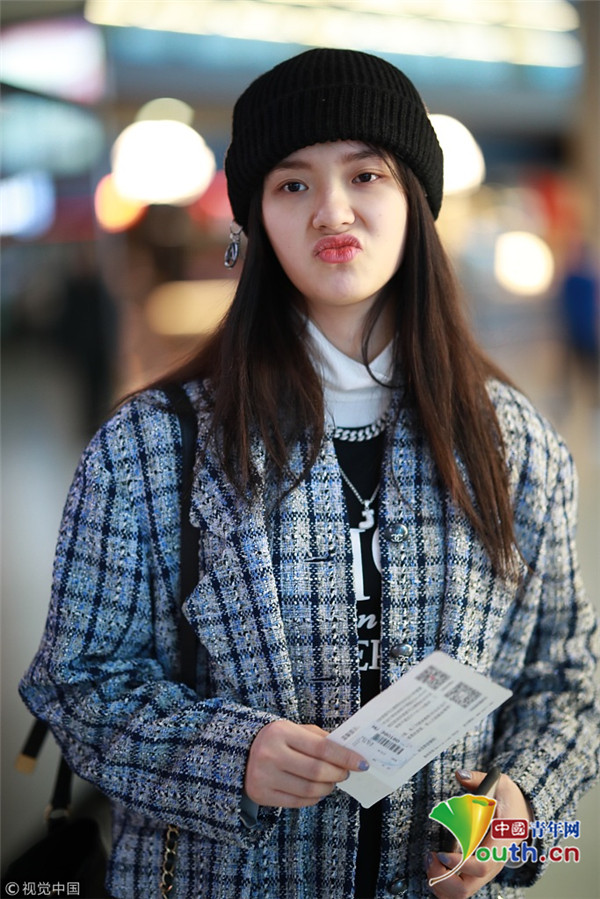 2019年2月10日,林允現(xiàn)身機(jī)場(chǎng),從上海飛往北京。她穿格子大衣氣質(zhì)非凡,不懼素顏嘟嘴賣萌大方任拍,捧果汁回眸揮手告別粉絲,依依不舍。