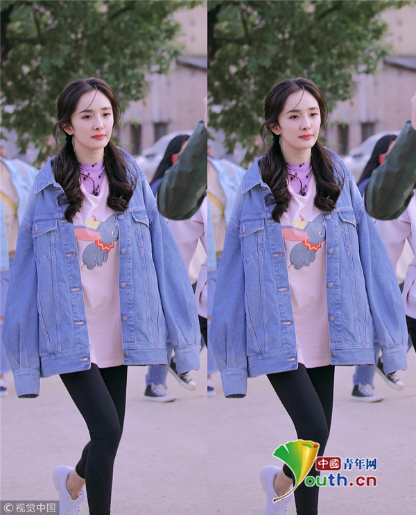 2019年3月12日,湖南長(zhǎng)沙,楊冪錄制某綜藝節(jié)目路透曝光。她扎著雙馬尾甜美可愛(ài)似少女,穿oversized的牛仔外套和寬大T恤,戴著防曬的護(hù)袖,身材十分纖細(xì)苗條。錄制期間,楊冪氣質(zhì)明艷靈動(dòng)活潑,元?dú)鉂M滿青春感爆棚。