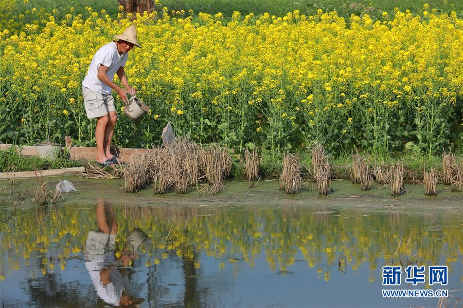 3月19日,游人在下涯鎮(zhèn)油菜花海中留影。近日,浙江省建德市下涯鎮(zhèn)油菜花盛開,吸引不少游客前來踏春。 新華社記者翁忻旸攝