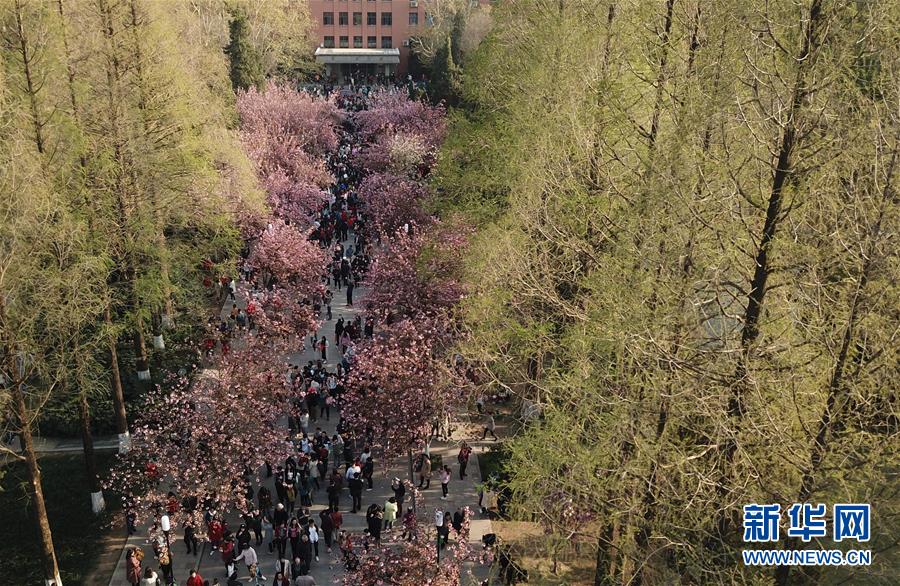 近日,位于安徽合肥的中國科學技術大學校園內櫻花競相開放,吸引眾多游客和市民前來觀花賞景。