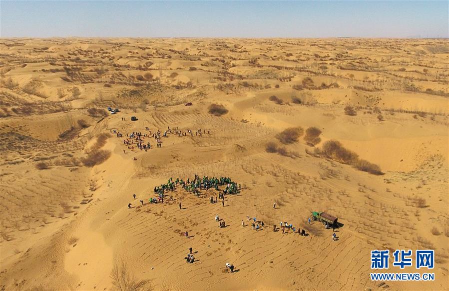 3月31日,中韓青年在內(nèi)蒙古達(dá)拉特旗庫布其沙漠中植樹(無人機(jī)拍攝)。 當(dāng)日,200余名中韓兩國青年志愿者來到內(nèi)蒙古自治區(qū)達(dá)拉特旗庫布其沙漠種樹。2006年起,中國國際青年交流中心與韓國韓中文化青少年協(xié)會組織兩國青年志愿者在庫布其沙漠植樹,參與防沙固沙項(xiàng)目。截至目前已植樹850多萬株,造林3萬多畝。 新華社記者 劉磊 攝