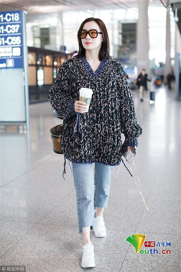 2019年4月10日,北京,袁姍姍現(xiàn)身機(jī)場。她穿碎花毛衣低調(diào)玩文藝,戴茶色墨鏡手捧咖啡,露腳踝美腿纖細(xì),休閑打扮隨意又愜意,時(shí)尚有型舒適十足。