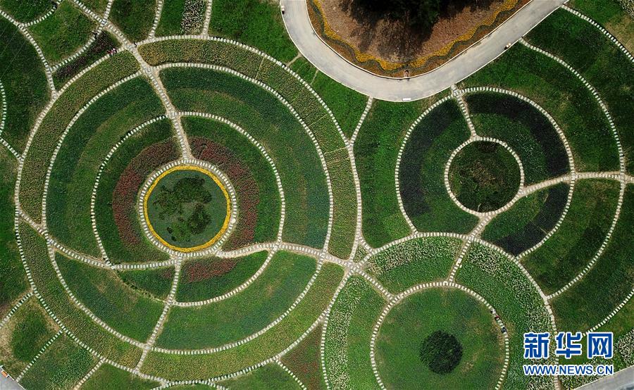 這是4月14日無人機拍攝的湖北省十堰市茅箭區(qū)的秦巴生態(tài)植物園。近日,位于湖北省十堰市茅箭區(qū)的秦巴生態(tài)植物園內(nèi),200萬株郁金香競相開放,吸引游客前來賞花游覽。 新華社記者 程敏 攝