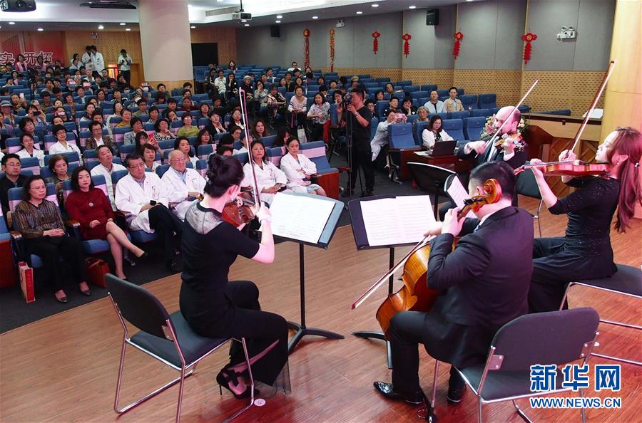 4月25日,上海交響樂(lè)團(tuán)的藝術(shù)家在復(fù)旦大學(xué)附屬腫瘤醫(yī)院為患者和醫(yī)護(hù)人員演奏。 當(dāng)日,第一場(chǎng)“全城交響·上交為你而來(lái)”音樂(lè)會(huì)在復(fù)旦大學(xué)附屬腫瘤醫(yī)院報(bào)告廳奏響,為患者及醫(yī)護(hù)人員獻(xiàn)上一場(chǎng)專屬音樂(lè)會(huì)?!叭墙豁憽ど辖粸槟愣鴣?lái)”是上海交響樂(lè)團(tuán)2019年向全上海的機(jī)構(gòu)及個(gè)人開(kāi)放的公益演出項(xiàng)目。 新華社記者 任瓏 攝