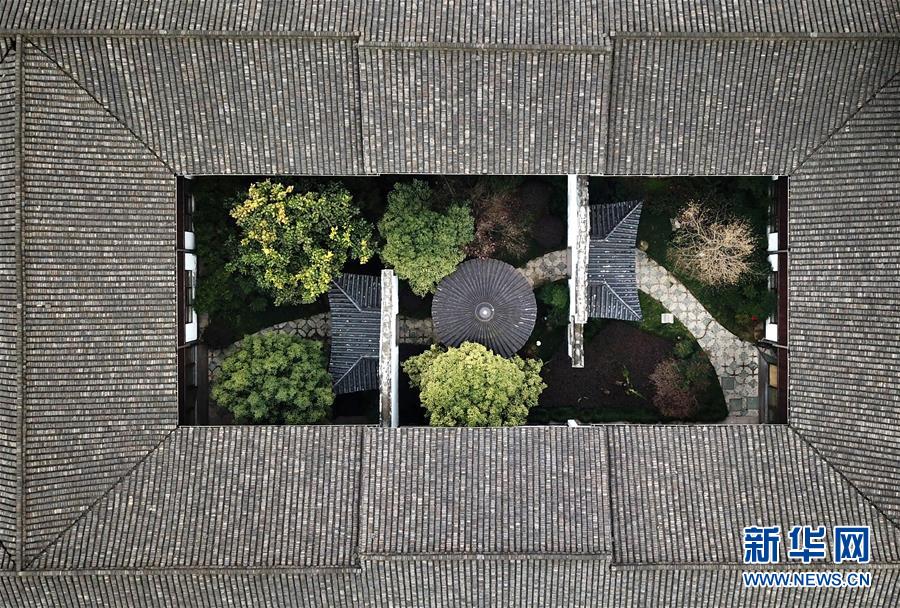 這是浙江省桐鄉(xiāng)市烏鎮(zhèn)景區(qū)的一處庭院(2月25日無(wú)人機(jī)拍攝)。 新華社記者 翁忻旸 攝