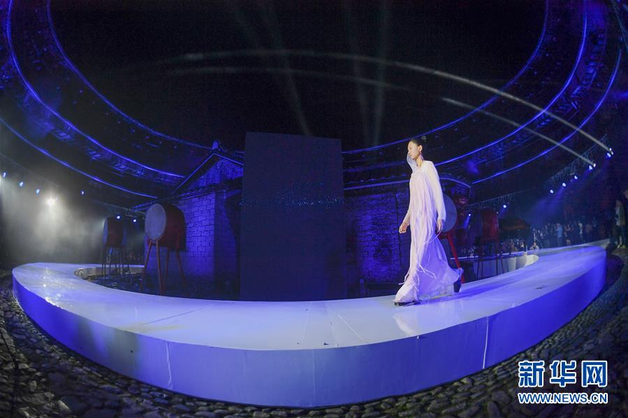 4月27日,模特在位于福建省南靖縣的土樓裕昌樓展示服飾。 當(dāng)日,土樓光語(yǔ)國(guó)際時(shí)尚大秀在福建省南靖縣的土樓裕昌樓內(nèi)舉行。這場(chǎng)融匯文化、時(shí)尚與旅游元素的大秀,通過(guò)傳統(tǒng)與時(shí)尚的有機(jī)融合,展現(xiàn)南靖土樓及文化的魅力和風(fēng)采。 新華社記者 宋為偉 攝