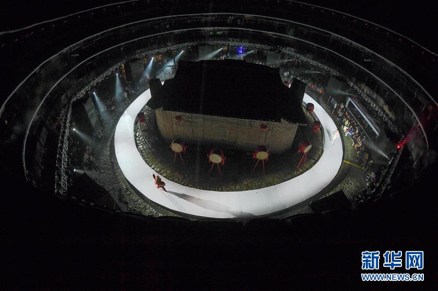 4月27日,模特在位于福建省南靖縣的土樓裕昌樓展示服飾。 當(dāng)日,土樓光語國際時尚大秀在福建省南靖縣的土樓裕昌樓內(nèi)舉行。這場融匯文化、時尚與旅游元素的大秀,通過傳統(tǒng)與時尚的有機(jī)融合,展現(xiàn)南靖土樓及文化的魅力和風(fēng)采。 新華社記者 宋為偉 攝