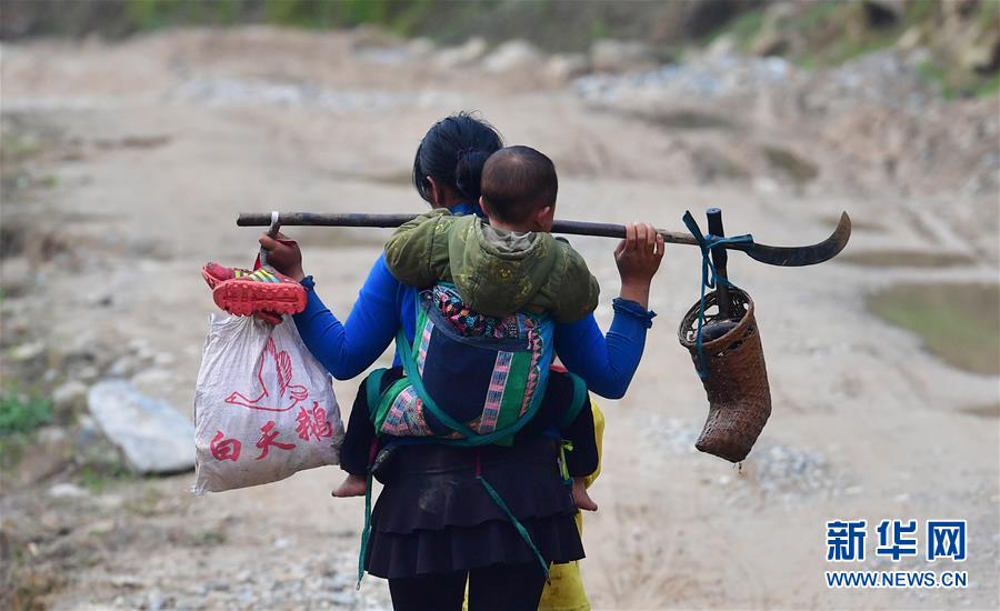 在黔桂烏英苗寨,村民勞作歸來(3月18日攝)。  新華社記者 黃孝邦 攝