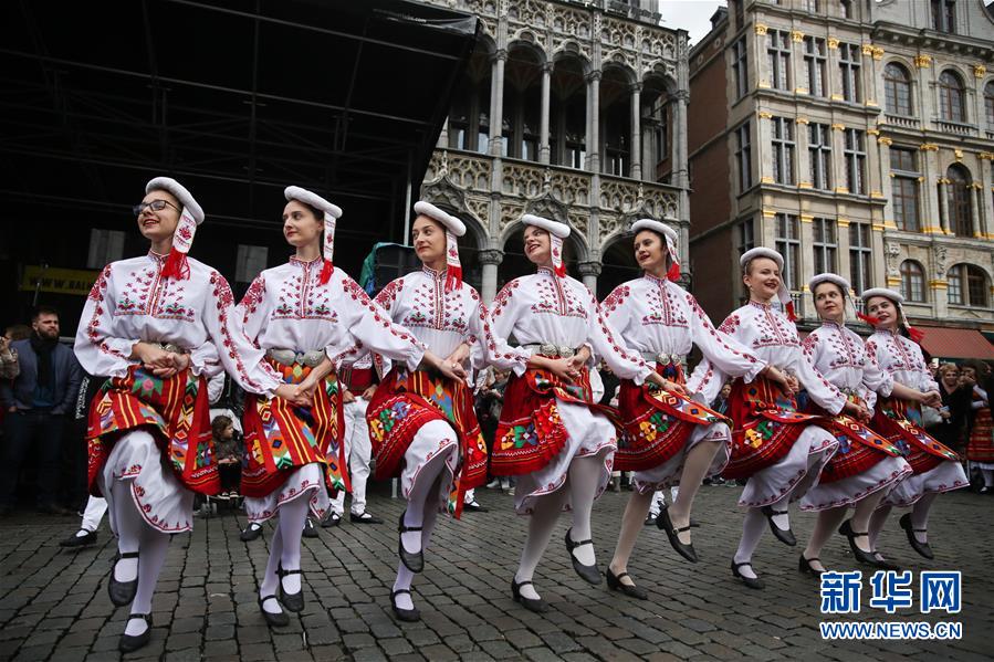4月28日,在比利時(shí)布魯塞爾大廣場(chǎng),演員表演保加利亞的民族舞蹈。 當(dāng)日,來自歐洲多個(gè)國家的表演者在比利時(shí)布魯塞爾大廣場(chǎng)載歌載舞,慶祝為期五天的2019年巴爾干文化藝術(shù)節(jié)圓滿落幕。該文化藝術(shù)節(jié)旨在用音樂、舞蹈、文學(xué)、街頭藝術(shù)等方式向公眾展現(xiàn)東南歐巴爾干半島地區(qū)的民族文化風(fēng)情。 新華社記者鄭煥松攝