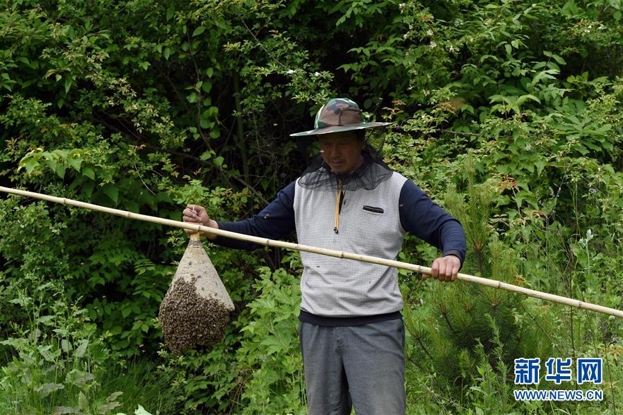 5月10日,在甘肅省隴南市徽縣大河店鎮(zhèn)硬灣村,蜂農(nóng)周仲頤在收蜂。 甘肅省隴南市徽縣大河店鎮(zhèn)硬灣村位于秦巴山區(qū)深處,2017年,在當(dāng)?shù)卣姆龀窒?,龍崖老巢蜜養(yǎng)殖農(nóng)民專業(yè)合作社成立,蜂農(nóng)們將傳統(tǒng)養(yǎng)蜂技藝和現(xiàn)代加工方式相結(jié)合,并通過(guò)電商等渠道打開銷路,有效帶動(dòng)了當(dāng)?shù)刎毨Т迕衩撠氈赂?。目前整個(gè)合作社共有蜂箱2000余個(gè),每箱每年可帶來(lái)三四千元的收入。 新華社記者 馬寧 攝