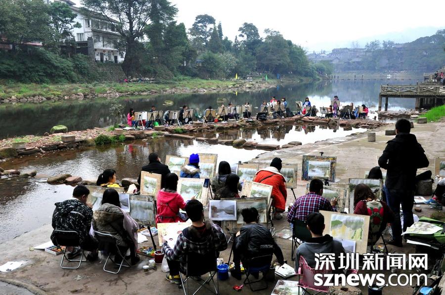 古鎮(zhèn)吸引很多寫(xiě)生的學(xué)生 李 仁奇 攝