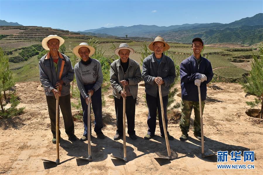 這是2017年5月26日拍攝的在呂梁山上種樹的嵐縣會里村村民。新華社記者 曹陽 攝