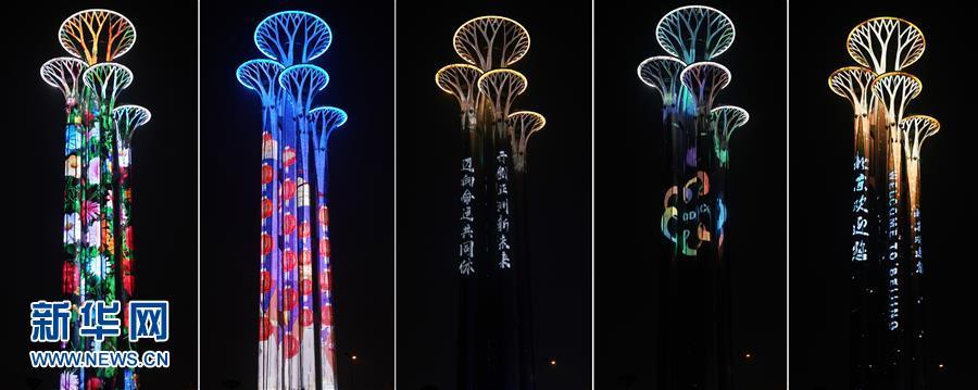 奧林匹克塔燈光璀璨(5月14日攝)。 當(dāng)晚,一場(chǎng)“空間光影秀”在北京上演。 新華社記者 李賀 攝