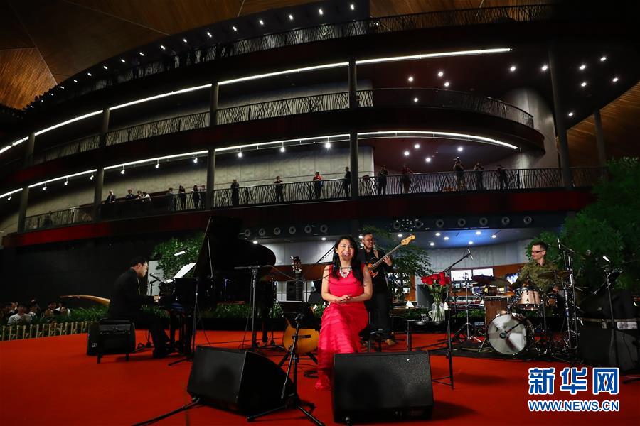 5月19日凌晨,觀眾在國家大劇院公共空間欣賞小野麗莎“午夜玫瑰”爵士樂專場音樂會。 5月18日晚,作為亞洲文化展演活動的演出之一,著名爵士歌手小野麗莎攜樂團首次登臺國家大劇院,亮相“午夜玫瑰”爵士樂專場音樂會。 新華社記者 張玉薇 攝