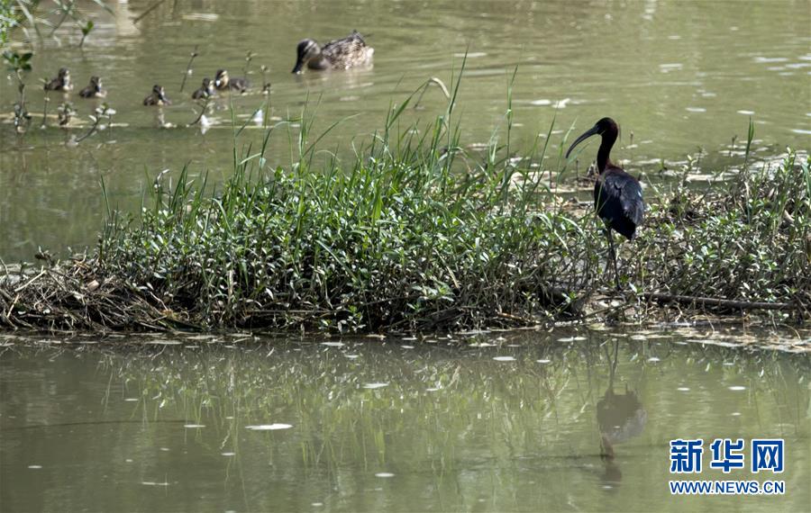 5月21日,一群野鴨從棲息在漢江濕地公園里的一只彩鹮身邊游過。 近日,國家二級保護動物彩鹮現(xiàn)身陜西省漢中市漢江濕地公園濂水河與漢江交匯處。 據(jù)陜西師范大學生命科學院教授于曉平介紹,彩鹮在世界上的分布比朱鹮還要少,這幾年在云南發(fā)現(xiàn)得多一些,這3只彩鹮現(xiàn)身漢江濂水河畔,是陜西首次發(fā)現(xiàn)彩鹮蹤跡。 據(jù)了解,彩鹮是國家二級保護動物,屬鵜形目鹮科,體羽大部為青銅栗色,是珍稀鳥類朱鹮的“近親”,體型比朱鹮略小。 新華社記者陶明攝