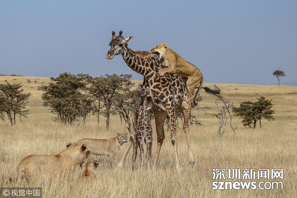 詹姆斯·納帕索解釋說:“這頭小鹿出生只有幾天時(shí)間,但對(duì)獅群來說,要捕獲它仍然是一場巨大的挑戰(zhàn),因?yàn)槟搁L頸鹿竭力保護(hù)它的孩子,而成年長頸鹿的飛踹對(duì)獅子來說通常是致命的?!弊罱K,由于被獅子攻擊頸部,這位勇敢的母親退卻了,它最終失去了它的幼崽。