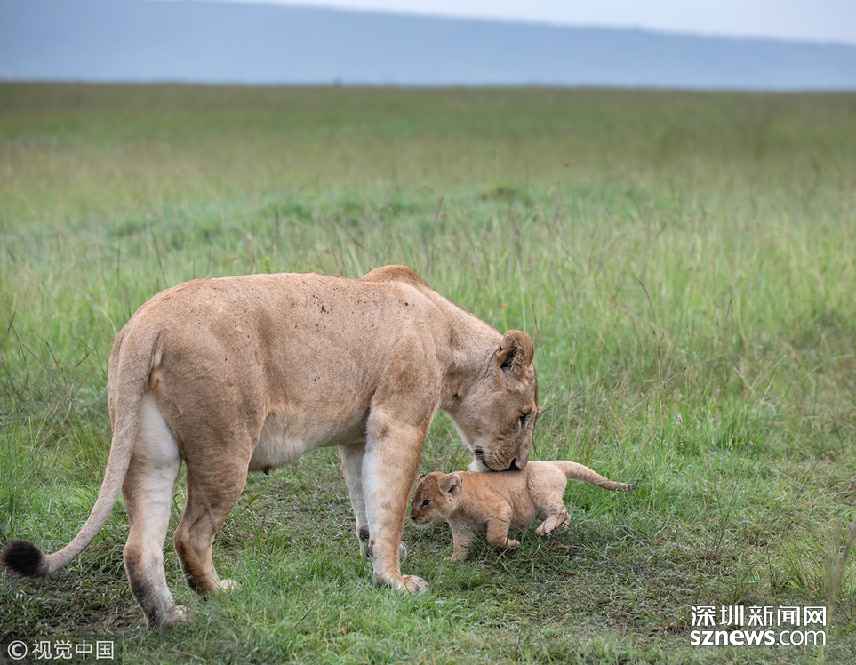 英國野生動物攝影師Paul Goldstein在肯尼亞的馬賽馬拉拍到了一頭小獅子被媽媽教訓的場面。